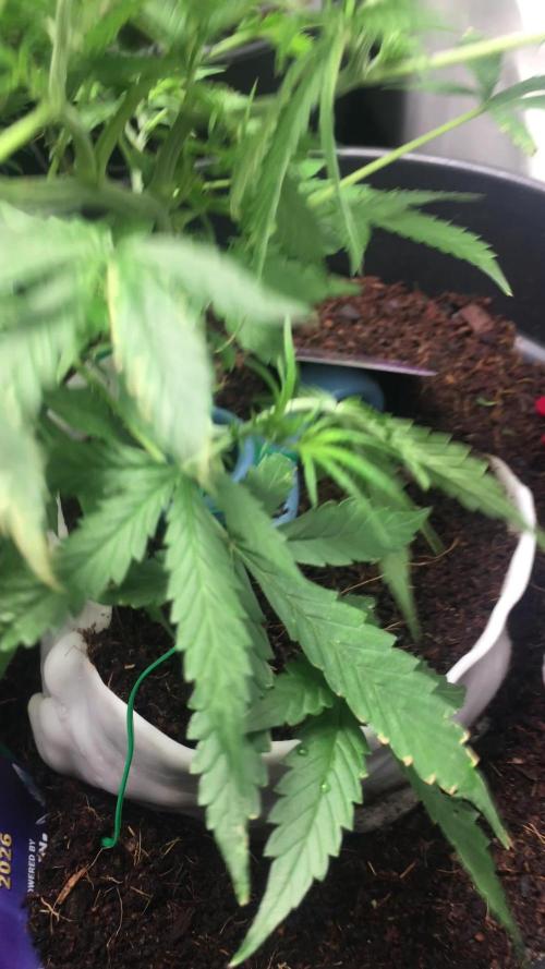 Came up showing a yellow set of leafs. Meaning I put the seed to deep into the substrate. And it broke its shell long before popping its head above the sub. Growth is good. Hopefully coming into day 9 or 10 she should have left the seedling stage and into a veg phase.