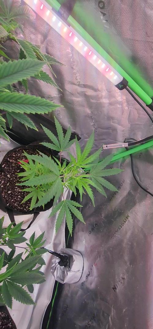 The Lemons move into week 7. They have a fantastic smell now! The scent in the room is a sugary, sweet citrus backed up by a spicy black pepper. I pruned off the lower leaves that were turning yellow, many of them were squashed and bent from the walls anyway and some were actually hanging off where they've been pushed about a bit in the space, but it's all good. The buds on LP#2 are really tightening up now, but they're really making the buds on LP#1 look a bit leggy, especially the buds on the side stems. In terms of issues, there is some pretty serious light bleaching going on in the tips of the leaves, but what's done is done, so I'll have to keep an eye out for that in future grows. Otherwise plants look healthy. Leaf Surface Temperature at the canopy is 25c, which is about 2-3c lower than the ambient temps in the space, so I think thats all good, despite the light bleaching they shouldn't be suffering from heat stress too much really. Hopefully going to see the buds fatten up real nice over the next couple of weeks before harvest!