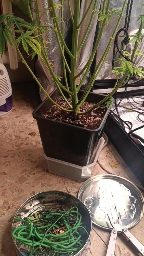 Es ist vorbei, jetzt wird geerntet. Zwei sehr unterschiedliche Phänotypen werden sehr bald im Vaporisator auf ihren Geschmack, Duft und Wirkung getestet werden. Auch wenn die kleinere der beiden Pflanzen vielleicht noch etwas länger hätte stehen können. Es war kein Platz mehr im Zelt und der oberste Bud der großen Runtz fing an zu verbrennen. Für ein SOG halte ich solch unterschiedliche Phänotypen nicht geeignet, anders sieht es allerdings mit Stecklingen von ihnen aus. Insgesamt unkomplizierte Pflanzen, nur die Thripsen bekam ich nie vollständig in den Griff. Dies war mein erster Indoor Grow und ich stelle fest, daß meine Grow Box nur Platz für eine Pflanze hat wenn es eine Schönheitskönigin werden soll. Immerhin habe ich es noch geschafft eine paar schöne Blattverfärbungen an der größeren Pflanze zu erreichen. Auf den Bildern kann man das wilde, ungestüme gut erkennen.