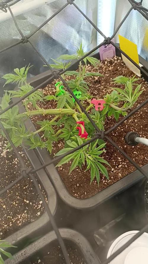 Outside of that still no adverse issue to report for the end of the 8th week. After my last trim, they both have responded very nicely, I was kind of worried about fat banana stalled growth. But one thing I noticed when I topped her at the 6th node, yes the main stem stopped growing but it developed many bud sites up and down every stem. Whereas hulkberry was topped at the 8th node, she has mainly focused on developing long stems and only 2 or 3 bud sites along her stems. Even though hulkberry in structure, is much bigger than fat banana and has a way bigger root system. Fat banana is bushier and has developed way more bud sites than hulkberry. I can't tell which strain will yield the most at this point only time will tell!