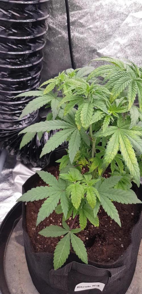 Watergift: 1000 ml, met 0.2 ml Silica Power per liter, 0.3 ml CalMag per liter en 1 gr Calcium, 0.6 gr Hybrids en 0.4 gr PK+ PowderFeeding per liter. EC: 1.7 PH: 6.2
