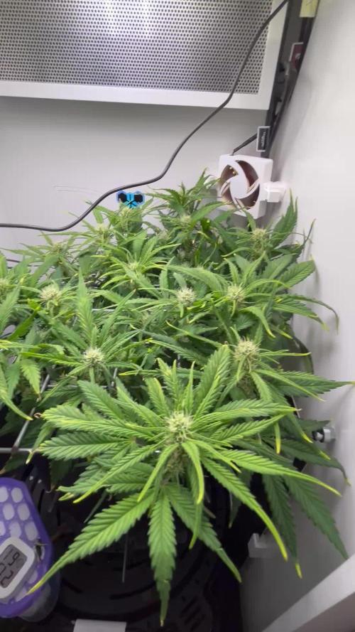 Sobre Alice K. está creciendo super bonita y sana, hace un par de semanas encontré y maté una arañita blanca (Requiescat In Pace), a día de hoy (semana 7) no he visto más signos de insectos. También debo remarcar lo equitativamente que está creciendo y lo bien que soporta las altas temperaturas y la escasa humedad, hay alguna vez que he mirado el higrómetro y estaba al 35% dentro del armario.