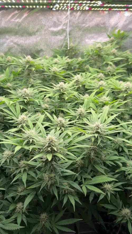 Terreau enrichi comme ci-dessus avec guano de floraison et ajout de guano de croissance, passage en floraison fin de 4 ème semaine, ajout d'oligoélément Trace Mix Canna, MC4, 1/4 dose de Top-Max et sel d'epsom.