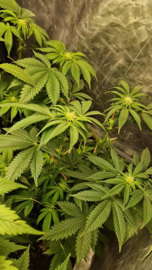 Die Pflanzen sind innerhalb von 2 Tagen explodiert. Ich habe das Licht nun auf 75 Prozent gestellt und noch einmal Cal-Mag nachgegeben, da die letzte Gabe nur eine halbe war. Die beiden Titan sehen fast identisch aus. Die beiden Epsilon sind circa 3 Tage unterschiedlich, eine ist etwa 5 cm kleiner als die andere und hat noch kaum BlĂŒten. Ich denke, in 3 Tagen wird das der Fall sein. Die Cosmos F1 ist im Umfang circa 50-50 cm, kaum BlĂŒten bisher. Ich hoffe, sie wird nicht noch viel gröĂer, da der Platz langsam eng wird. Ich bin von dem Wachstum dieser Pflanze absolut begeistert. Mal gucken, was die BlĂŒte bringt.