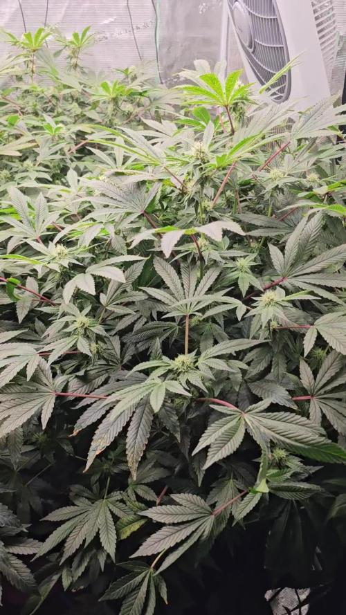 Wk10 63-67 I stopped everything nutrient wise. And let her finish the ride out on water until day 67 and she gladly ate what was in her pot and showed no signs of wanting more, so I hard flushed her 1x pot value (11L) and got a ppm of 900ish, so 2x (22ish) more the pot value until it came down to 210. And for 3 more days I left them girls drink what they could from the pot and left them under my 100w where they've lived the past 3-4 weeks and I'm gonna pull them this week, they are resting 30hrs already and then I'll pull them, and harvest them whole, roots and all will be pult and I'll shake the clay off, bag the roots and hang dry upside down, (so no dirt falls on the buds while drying from the roots) and will dry at 55-60 rh with a temperature of 17-19c. I'll try keep the RH around 59 but I'm not gonna worry too much if it differs from that range. I already cut a wee bud off her the today, just a small 1 to try her for taste. And I'll rate it on harvest. As she's low on CBD, I'll rate her on taste. But, she'll be a nice addition to my full THC smoke no doubt.