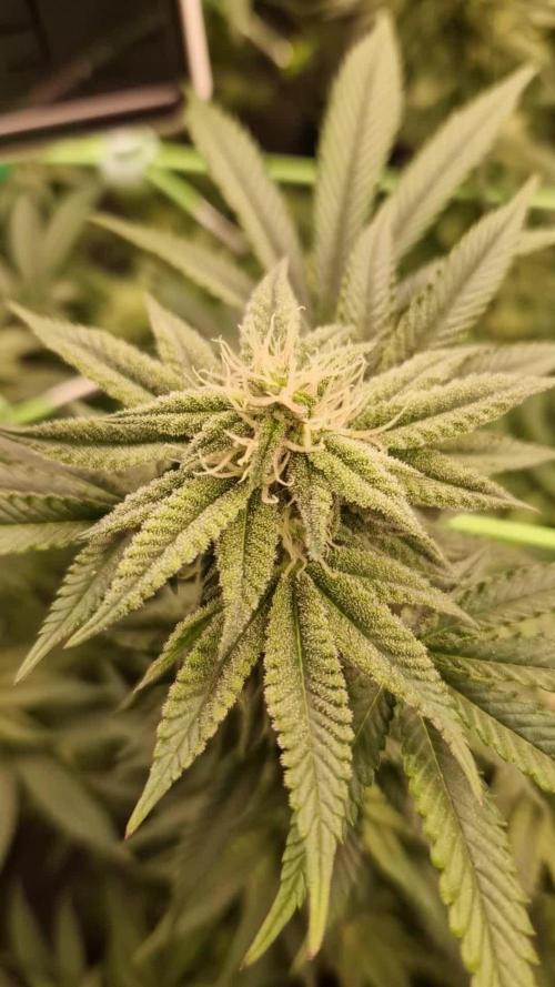Starting to see some possible nutrient issues forming as she is aging and some of her leaf tips are starting to curl down a bit. Red hairs have started so we should be less than three weeks to go and guess at roughly 2 weeks to go. Will be feeding next week but that might be the end......see what the week brings.