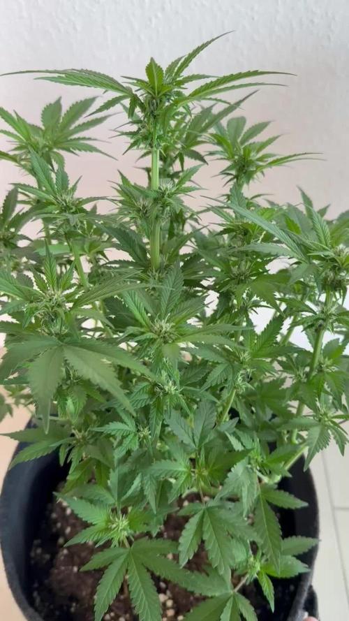 The smell is getting pretty strong, with a very sweet scent (almost like berries) when I open the tent. The buds are starting to get some weight as well. Interestingly the two plants that veg'd a little bit slower seem to be budding the strongest. The plant that had explosive growth during veg has a ton of tops, but the buds are smaller. But overall they're all looking pretty good. No signs of issues as far as I can tell, tons of trichomes on the buds and sugar leaves. Expecting ~10 weeks of flower, so they're about half way done. Hopefully they'll keep packing on some weight!