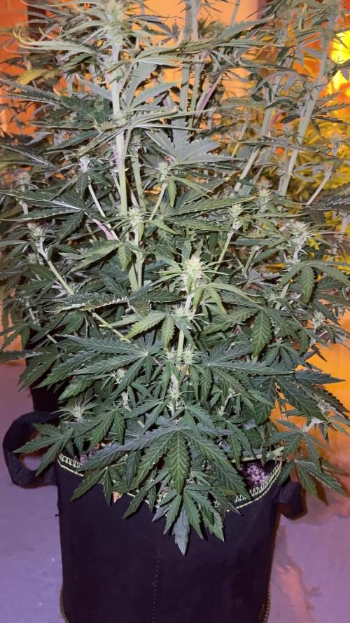 Day 36 Stretching has slowed but not stopped. 28-29” today. Feeding 3L per plant now. The orange haze seems to be flawless, the other 2 needing a little extra calmag and N, but early flower can be expected. Humidity holding at around 50-55% little higher than I want but plenty of air blowing inside and strong extraction, so no problem. Would like to see the bud sites fill out over the next few weeks, before swelling. White pistils everywhere very exciting to see these blossom. Lovely mild fruity smell already from the tent. Day 38. Heavy feed on day 37, nute burn on one off the plants which I think I’m gonna flush soon, and maybe a slight N deficiency and calmag still on the other 2. Stretching looks to have stopped, Bud sites filling out nicely now