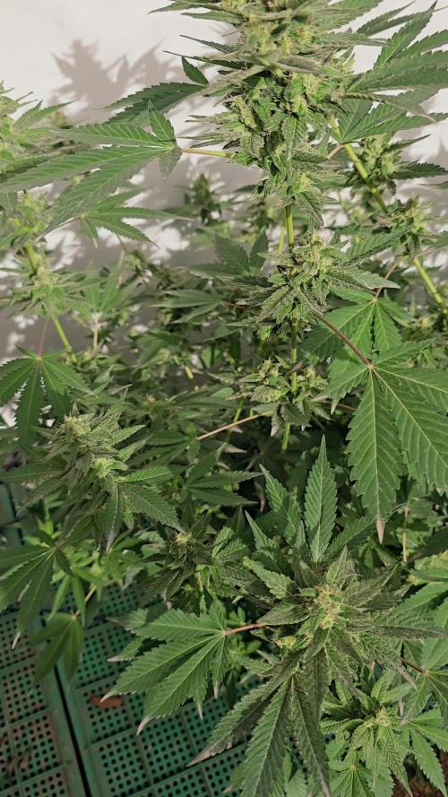 Cake is still vegging at 28 inches. Her new growth is starting to show the pistils at the bud sites.