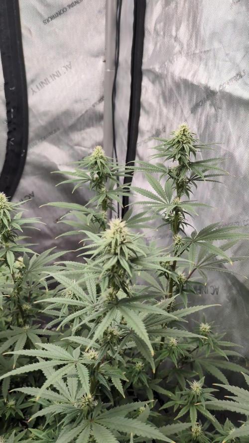 🔸 Nutrients & Water: She’s had her last nutrient boost, and is now on a clean water flush (pH-adjusted, EC ~0.5). Water uptake has slowed, letting her pull the final goodness from her leaves into those already weighty flowers.