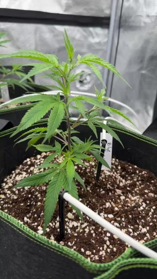 I don’t want to overdo fertilizer near the end, but I decided she is showing K deficiency. I’m out of malted barley but I still have potassium silicate, so I used that and some cal-mag. I’m avoiding kelp and molasses or using more P at this late stage because that can make the dried bud hard to burn and that really sucks. So, potassium silicate and cal-mag it is. The potassium silicate raises the pH and it takes about the same volume of vinegar to get the pH down. A good does of acetate is likely good for the bugs in the soil too. Then a squirt of Dr Bronners soap as a surfactant and that also supplies some biodegradable carbon for the bugs in the soil. Seems to work overall and is cheap.
