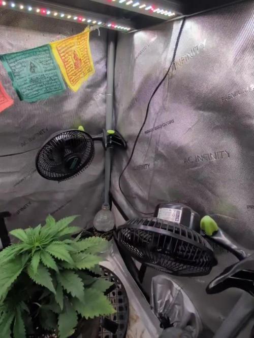 Forgot to update end of last week.. but here she is!... So this week she should still be stretching and (hopefully) the slowdown should be the following week.. she is doing good.. water, feed, water, feed, etc. But not daily.. I do water, feed, skip, water, feed, skip, etc. I do that so the day after feeding 1 gal., she gets a day to dry out. Then I water 1.25 gal. to help rinse salts and build-up.. then feed the next day again.. so she isnt left too long without a feeding.. but I'm sure things would be fine if I watered/fed daily.. just a bit of a hassle for me now.. collecting rainwater and cutting it with 25% crappy tap water works great.. but a hassle lol.. she is happy and so am I! You can see in the pics that the stiples are turning purple are red.. just the stiples.. not the leaves.. not the pistils.. also noticed that on my last run with ETHOS Cookies and Mandarin Cookies.. pretty.. hopefully she will be very colorful!