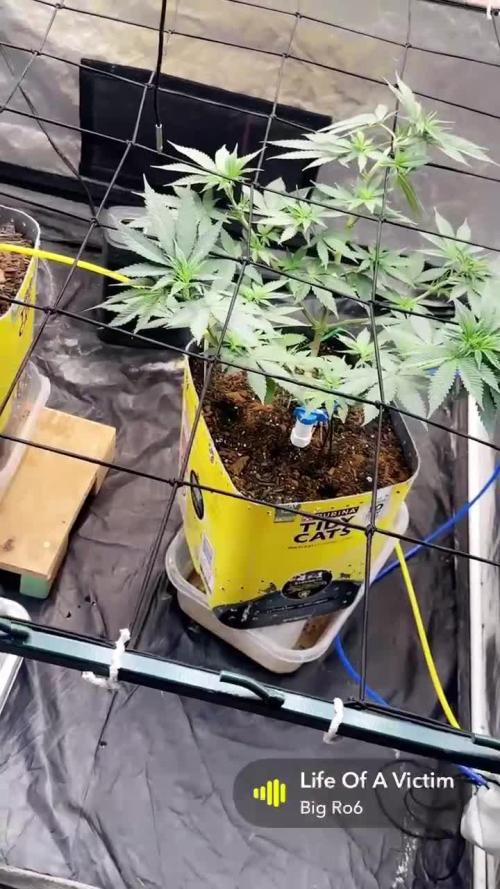 To do that, I had to take down the small light in the top of the closet to fit the drying baskets up there. So, I moved the 3 shorter plants still up there down to the bottom and put them on top of buckets. Now the bottom of the closet looks full again!๐