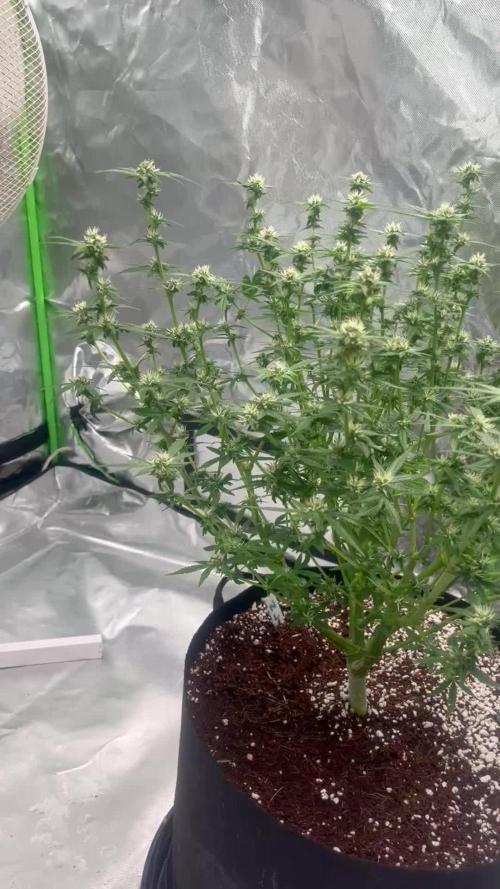 Auto moon rock didn't get really tall on my perlite experiment, but she has some nice thick colas on her. A good strong woody, earthy, pine aroma. She is covered in trichromes and looks very potent. She struggled with getting started. Then I gave her too much nitrogen early on. So this may of stunted her overall height as well. She came out good though it all. I willhave a few ounces once done, and that's what counts. Thank you Divine Seeds, and Medic Grow. 🤜🏻🤛🏻🌱❄️🌱