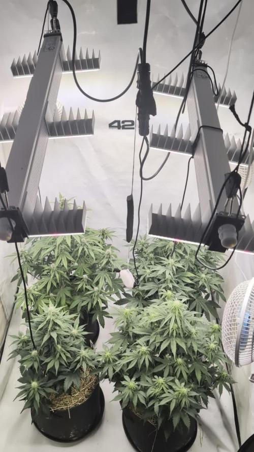 Pure Ice cream is doing great. I took 2 clones off her yesterday in a attempt to catch the mutation. Dunno if they will make it, or if i got a good sample of the mutation. She had her canopy lollipopped today, along with some selective defoliation. She is growing great under the Spider Farmer G5000/UVR40 lights, in the Athena blended line nutrition. Thank you Athena, Spider Farmer, and Pure Instinto Seeds. 🤜🏻🤛🏻🌱🌱🌱