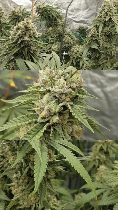 What a frosty strain, rivals Stardawg in the stickiness. Good resin potential Not a big feeder, normal levels do the trick as they will show some burn if they dont like it. Not a stinker at all Will try to foxtail @ 85F The stretch caused by the tent space issues with the Green Crack really shows here, man 2 ft of plant that was not needed. My fault, start flower under blue or white lights until stretch ends as they will get tall Serious stretch under HPS Excellent genetics, taste test in a few days I _ WANT_ MORE ... please 😉 Letting the FF7 stay in the tent a bit longer, removed all but the small fans to keep the air moving but slow down the rate. Just test weights (love hanging them like this) say @200g a plant. maybe we will see Almost forgot, pulling a small branch from Aeryn to test Easy harvest, nice dense frosty sticky buds, cannot ask for more.