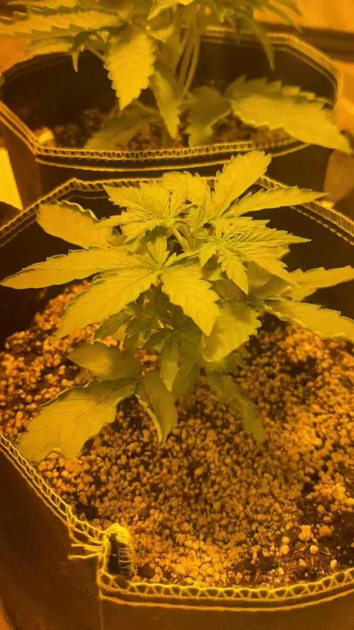 10/3/2022 is officially 1 week from germination. All three plants are looking good so far. The Orange Bubblegum continues to lag the other two, but it's growing. I just watered 1 liter per plant on 10/2 and the pots are still heavy, so all I've been doing is a slight misting to keep the top soil moist. Waiting for my barley straw to show up, so I can start building a mulch layer. On 10/4/2022 the top of the soil was dry about 1 to 2 inches deep, so I watered about 1 liter across all three plants, so about 1/3 liter per plant. The bags were still fairly heavy, so this was mainly to keep the top soul moist. I've always used bottle nutrients with a dry down period, but from what I've researched, you want to keep the living soil lightly moist. I'm a bit skeptical so we will see how it goes. Using very little water in these early stages to avoid suffocating the roots (hopefully 🤞). On 10/6/2022 the pots started getting lite, so I did a full water of 1 liter per pot, using ThermX 70 and Fish Shit. Everything still looks healthy. On 10/8/2022 I added my barley straw as a mulch layer. Also, add a little less than 1/4 cup ground gnarly barley from Build-a-soil, with some worm castings as a top dress. Lightly watered to moisten the straw and top dress. Hoping the straw will slow the drying of the top inch or two of soil and prevent the light misting I've been doing.