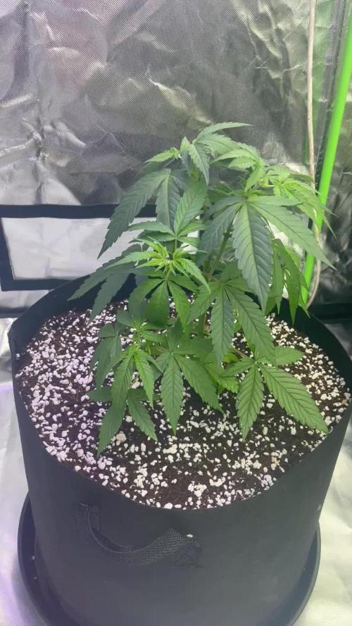 09.11.25 aVW28 7 days since flip,stretch in full swing, first pistils showing, leaf color deep and healthy. Slight tip burn early week → gone after pH stabilized.