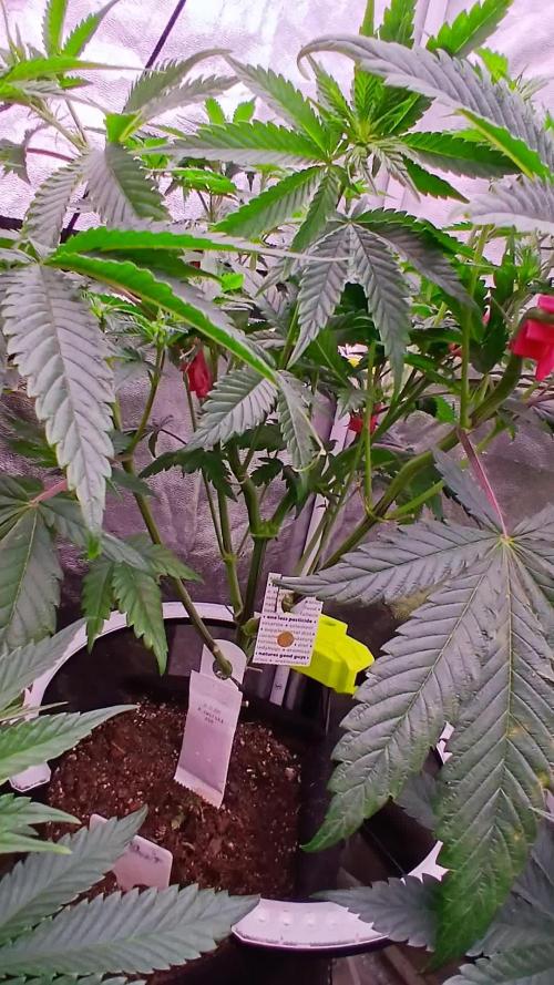 I just harvested her today. Frosty looking nuggets with a pine citrus earthy aroma. Super sticky as well. I had about a 5 to 10 percent amber trichromes. I might of been a pinch early, but she was starting to foxtail. The colas look really nuggy.