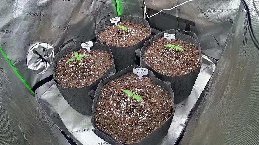 🌿 Tag 7–14 – Wir nehmen Fahrt auf Die Tage fliegen dahin, und wir wachsen, als hätten wir’s eilig. Unsere Wurzeln graben sich tief in die Erde, der Boden riecht lebendig, und das Licht fühlt sich inzwischen vertraut an warm, stetig, fordernd. Ich, Banana Purple Punch, halte meinen Titel als Chefin weiter fest. Mein Stiel ist kräftig, meine Blätter breit, und die Seitentriebe drücken schon nach oben. Ich spüre richtig, wie Energie durch mich rauscht das hier wird groß. 🍌 Wir beiden Lemon Cherry Cookies haben ordentlich aufgeholt, aber nicht ganz gleichmäßig. Meine Schwester steht schön stark da, ich selbst bin noch ein Stückchen kleiner kein Problem, Gleichstand kommt später. Unsere Blätter sind sattgrün und ruhig, wir wachsen lieber bedächtig als überstürzt. 🍋🍒 Ich, Purple Haze, halte wieder die Mitte. Nicht zu wild, nicht zu faul. Ich wachse konzentriert, Blätter weit ausgebreitet, und jedes bisschen Licht fühlt sich an, als würde es durch mich hindurchfließen. Am Tag 12 gab’s richtig was zu trinken – 1 Liter Wasser mit pH 6,2. Das war ein Fest. Der Boden war kurz still, dann hörte man förmlich, wie die Wurzeln jubeln. Das Klima bleibt angenehm: 25 °C, 60–65 % LF. Keine Hitzewellen, kein Stress, nur stetiges Wachsen. Teaser: Unser Gärtner redet schon seit Tagen davon, „bald einzugreifen“. Heute, Tag 15, war’s dann soweit: alle wurden getoppt. Wir wissen nicht genau, ob das gut oder schlecht ist. Ein paar von uns sind skeptisch, andere finden es spannend. In ein paar Tagen werden wir sehen, ob es die richtige Entscheidung war.