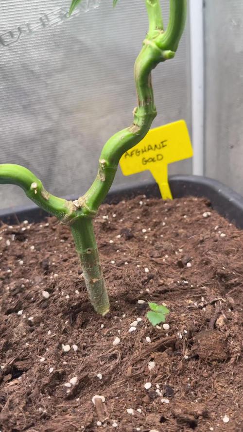 KEVS_BEST Woche 7 – Erste vollständige Blütewoche & Stretch-Boost Nach dem holprigen Start zu Beginn der Blütephase in Woche 6 konnten die anfänglichen Nährstoffmängel durch die verspätete Umstellung auf Canna Terra Bloom erfolgreich ausgeglichen werden. Die Pflanzen zeigten sich zu Beginn der ersten vollen Blütewoche wieder vital und reagierten mit kräftigem Wachstum auf die neue Nährstoffversorgung. Der Stretch nahm nun richtig Fahrt auf – mit einem durchschnittlichen Zuwachs von bis zu 2,5 cm pro Tag. Die Internodienabstände blieben dabei kompakt genug, um eine schöne Struktur für die spätere Blütenentwicklung zu ermöglichen. Dank stabiler Umweltbedingungen (ca. 26 °C bei Tag, Luftfeuchtigkeit unter Kontrolle) verlief die Woche ohne neue Zwischenfälle. Die leicht zuvor beobachteten Mängel verschwanden vollständig. Die Triebspitzen begannen nun sichtbar, erste Blütenansätze zu entwickeln – weiße Stigmen zeigten sich deutlich, das typische Anfangsstadium der Sherbzooka-Blüte setzte ein. ENGLISH KEVS_BEST Week 7 – First Full Week of Flower & Stretch Boost After the bumpy start into the flowering phase during week 6, the initial deficiencies caused by the delayed switch to Canna Terra Bloom were successfully corrected. At the beginning of the first full flowering week, the plants recovered well and responded with vigorous growth. Stretch really kicked in – with daily growth rates of up to 2.5 cm. Node spacing remained tight enough to support ideal flower stacking later on. With stable environmental conditions (around 26 °C daytime, humidity under control), the week continued smoothly without further issues. The previous minor deficiencies completely faded. The top sites started to form the first clear flower sets – with visible white pistils marking the official beginning of the Sherbzooka bloom phase.