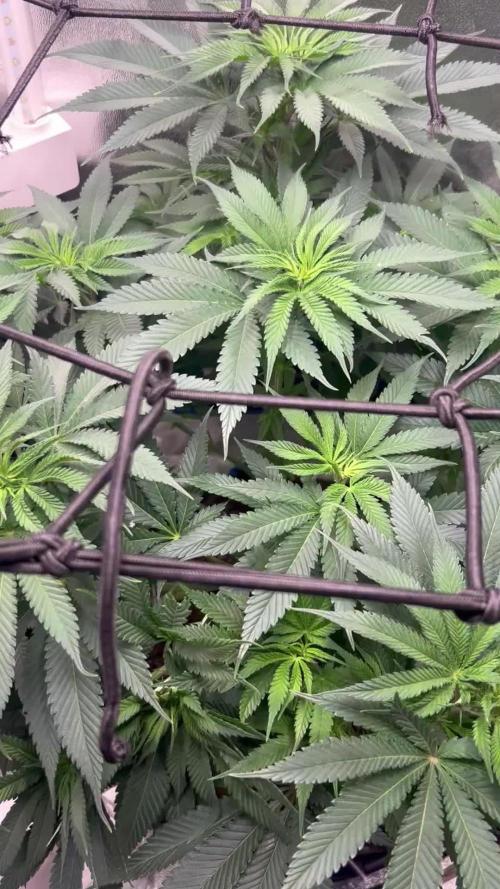 welp i pushed them 1 more week and now they are receiving the flower nutrients, i gave these ladies a heavy defoliation last week and as you can tell now it does not even look like a took a leaf off.. will possibly give 1 more like defoliation and then let them all put on the weight, lets see what these ladies are made of 😆