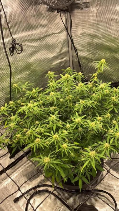 I fed her about 1/3 gallon today, and went heavy on phosphorous..a heavy dose of tiger bloom, along with a normal dose of beastie bloomz, bembe, cal-mag, signal, big bloom, and a 1/3 dose of grow big. It's been raining for 24 hours and the humidity is off the charts, so I dialed up the ac infinity to come on any time it exceeds 55% RH and increased the fan speed on the floor of the closet to try and dry her out quicker than usual.