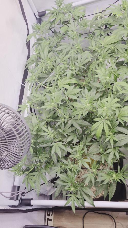 Bewässerung: 2500 ml jeden 3 Tag in der Zwölften Woche pH-Wert: 6.3 EC-Wert: 1,6 mS/cm Temperatur: 22ºC Luftfeuchtigkeit: 50% Schädlingsbekämpfung: Wir haben gemerkt das es immer mehr Trauermücken gibt und werden deswegen nochmal Nematoden in die erde geben. PPFD: 600 µmol/m²/s DLI: 38 mol/m²/Tag Düngemittel:Sie bekommt auch ab jetzt immer etwas CalMag von BioBizz zu Prävention. Ab Tag 16 haben wir angefangen sie mit einem Mineralischen NPK Dünger (NPK 10-4-7) und Mineralischen NPK Dünger (NPK 3,5-6-6) dazu kommt noch Canna PK13/14, Plagron Green Sensation und Plagron Power Buds. Besonderheiten: Haben heute nochmals Nematoden in die Töpfe gegeben, da es im Moment viele Trauermücken gibt, denken es liegt an dem Wetter. -Tag 79 Heute wieder Wasser und Dünger, und Nematoden, war wirklich nötig es sind sehr viele Trauermücken vorhanden, aber mit den Nematoden bekommt man es sehr schnell in griff. https://www.youtube.com/shorts/t7WpWW3qNQ8 -Tag 81 Heute wieder nur mit Wasser gegossen und ein paar alte Blätter entfernt. -Tag 83 Heute mit Dünger gegossen, man merkt das es deutlich weniger Trauermücken gibt nach dem die Nematoden jetzt seit ein paar Tagen im boden sind.
