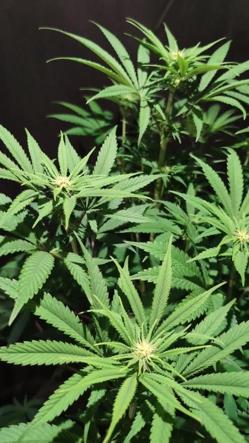 📝Thursday 06.08.23 - Watering with H20 PH @ 5.8/6.5 the buds on these girls are just getting crazy fat!, the new light setting is doing very well, and the plants are praying hard, and the Medic Grow Smart 8 Flowering Setting 1.
