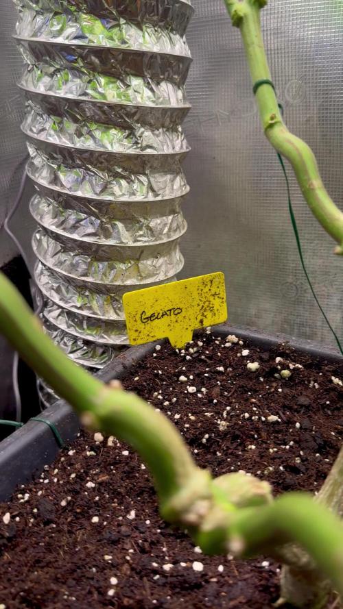 Nach der anfänglichen euphorie die Cookie Gelato wächst sehr schnell , kommt jetzt mal wieder die Erkenntnis das es in die Waagerechte immer viel langsamer voran geht. Aber sie wird immer kräftiger und drückt ordentlich das Netz hoch. Ein beherzter Low Stress ist also sehr zu empfehlen bei dieser Variationen. An Tag 47 habe die Gute ordentlich entlaubt und unnötige Zweige entfernt.