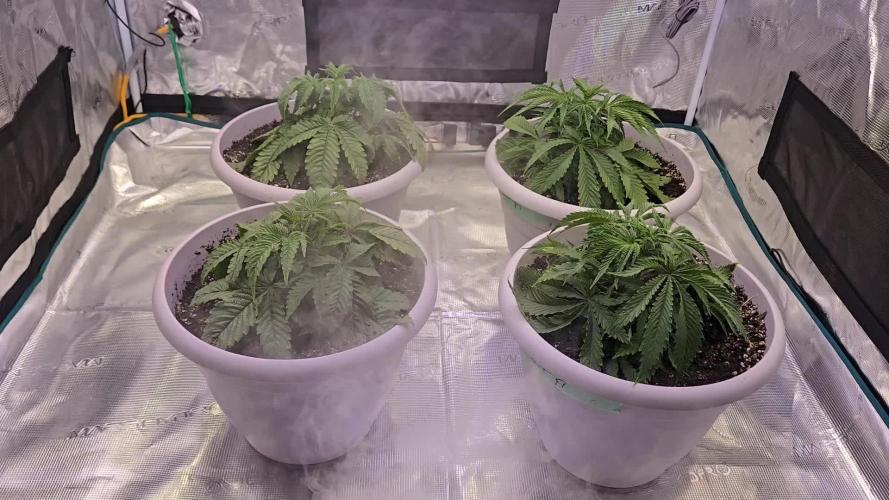 This week I received my new portable outdoor misting fan and hoses and got it set up on a timer with just airflow while the lights are on, and once the temps reach about 95f regularly, I'll have my hose timer let 10 minutes of water every 2 hours get misted across the canopy. It should lower the "real feel" by about 25-30 degrees and increase RH considerably. Also hoping that the constant airflow will make them stronger and keep insects off of them somewhat. It will also enable me to easily give them a blow dry if it rains in late flower. But wait...that's not all....it's also gonna be very much more enjoyable for me to sit in the garden and do my thang. 👍