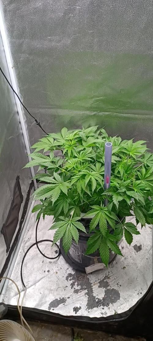 Day 66 Day 23 Flower 02/06/24 sunday Feed today! She is looking amazing, bud sites at nice distance this time, she has a strong structure. Light lower defoliation and final lollipop of tidy bud sites reforming. She is starting to smell like garlic / gas it's quite strong already. Dropped down again now to bottom of tent she has full headroom to bloom 💚 Not much else to say this week. Day 67 Day 24 Flower 03/06/24 monday Big feed today she was quite dry she happily took 4L I did 5L with a few drips of run off. She's really doing well in the flower transition. Will update pictures tomorrow. ## Since the weather has got warmer, I have been flooded with fungus gnats. So I have prepared my own organic pesticide spray. Boiling 2.5L water with 1 chopped onion, 1tbsp of chilli flakes, and 3 spoons of ground garlic. Boil for 10mins, simmer for 20. Allow to cool, Sieve off bits and lumps and pour into desired spray bottle. I prepped the soil first by applying ground cinnamon (helps to fight bad bacteria) a sprinkle to top soil. Then applied my sprayed to the soils, giving a generous spray, I left the canopy as already in flower and adding moisture to flowing buds a no go 🤦‍♂️ Already 24hrs after I see the difference, no more air born flies already 🙌😁💚 ## Day 69 Day 26 Flower 05/06/24 Wednesday PHd water and calmag today. Pictures updated. Not much else to say except seeing more developments towards her bud site now.