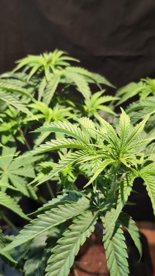 Hello Growers and Tokers! 👋 👩‍🌾 🧑‍🌾.🔥💨 Info and pictures were taken at day 12 of flower. Nice progress this week. There's plenty of new growth. She hasn't grown upwards as much as the other ladies, only about 5 cm this week. BUT she's got a darker green color, stronger smell than all the others. It's smell is unique and very strong. Not sweet, VERY pungent, it's a slap in the face kind of smell. Her bud formation is also more advanced than all the other girls. That's something I need to watch out for because she's an early finisher. Supposedly finishes in 40 - 45 days. Feeding 1,5L each, every other day. Will be increasing as they ask for more. How do they ask for more? When feeding if the soil is drier than normal I give a 150-200ml increment of water. I do that until they stop feeding so much then i just maintain that amount. I start reducing if it takes longer to dry. That works good for me. The old finger in the dirt trick. 👍 Nothing like knowing exactly what your ladies need first hand. That's it for now. Stay tuned for next week's update. If you like what you see check out the other diaries. Take care and stay safe! One love! ✌️🏽