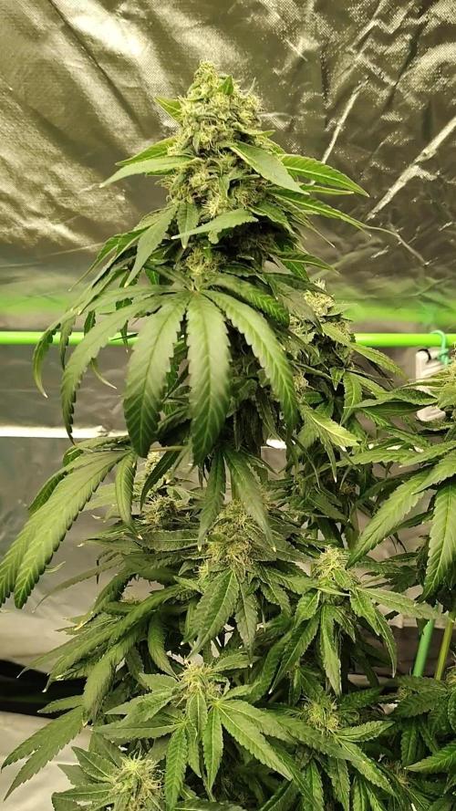 1/2/23 she’s doing great I moved a leaf and noticed that she has tan lines. That is amazing. This lights incredible I took the two bottom branches that I usually trim off. I’m glad I didn’t because I got 1.83 ounces and 1.78 ounces wet. This plant has been the best strongest plant I’ve ever grown it’s really nice and it smells great. I’m gonna give the rest of her, maybe another couple weeks it’s just exciting to watch her grow. I’m not in a hurry to harvest. I do partial harvest as I go along. 1/3 I turned the viper spectra XS1500 light down to halfway which is 82.3 W. And the amount of energy still is more than two of my old spider farmer lights. I had no idea how important brand new LEDs are this is just fantastic. I bet I can grow an entire plant for probably 90 W. 1/4 yum yum omg smells gooooooood.. FYI, Just because a Gamorrean pledges their loyalty doesn't mean they wont eat your weed, lesson learned. 1/4 Just smoked some that had been drying for only 2 days. The smell was so strong like no auto I have ever smelled. This is like top shelf photo from the dispensary. I am totally impressed. 1/6 i’m going to set up a new tent. It starts with the power source. It looked really ugly, so I wanted to try something nicer. I got one of the TP Link power strips three individual outlet controls for the smaller tent that I will germinate in my use one to monitor the power of the light and I keep switching them around. It’s really nice to have. 1/8 I’m going to plant some seeds today. It’s Elvis’s birthday. I threw away a liter of Purpinator today. I’ve been having nutrient troubles, and I noticed a little that I had mixed up in a small spray bottle had started to congeale. And after I tried 6 mL of it in a gallon twice I noticed some plant damage. I don’t know if it’s that stuff or not but when I add something new it seems to cause damage. So I will never use that again. it’s taking me a month to set up a small 24 x 24“ tent I don’t know what’s wrong with me so I have two 27“ x 27“ and one 24 x 24“. The small tent will be for photoperiod also for germination, the other two are going to be for autos only. I’ve discovered auto flowers need their own tent and their own space, especially the way I train them. I top them after the 3rd node then wait until a couple weeks into flower and I soften the branches pressing them between my thumb & index finger to keep them limber then spread them out so they kind a look like a giant crab, but they grow up very strong and they don’t need support I was going to go with 5 gallon but I think it would be just too heavy so I’ll stick with 3 gallons. I’ll be starting to gorilla cookies this coming week probably tonight, but I’ll start the diary tomorrow. If you hold the phone up to the TV, it types out the dialogue . I’m gonna d mad max later don’t you wish you were like me easily amused? You get a lot less brains on your wall that way.