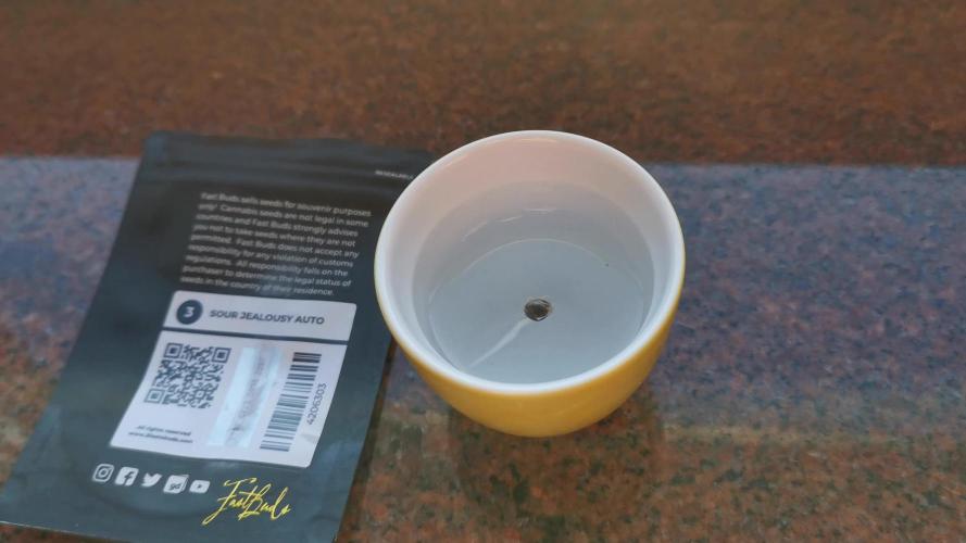 Welcome to my outdoor grow for season 2025. As always, I am using the water glass method to germinate the seeds. After less than 48 hours, a large root has already formed. The seedling was planted in a 25-liter fabric pot from Gronest. The substrate is mainly Floragard TKS 2. Some seedling soil was used as a seedling bed for the seedling. This year, I decided to go with the Sour Jealousy strain from FastBuds. Since I always get great results with this seed producer, I'm sticking with them. With a super warm and dry summer forecast for this year, I think Sour Jealousy is the right choice. I'm already excited about the terpene profile and can't wait to try it. Sonnenerde Bio Seedling soil: N 50-300 mg/L - P 80-300 mg/L - K 1500-2000 mg/L Floragard TKS 2 N 210 mg/L - P 240 mg/L - K 270 mg/L - Mg 70 mg/L - S 150mg/L See you next week