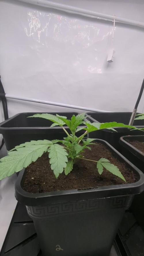 Den Pflanzen ging es soweit gut. Hatte bemerkt das der wachstum langsam voranging. Ich konntrolierte den EC im Drain. Der war viel zu hoch für die jetzige Vegi Zeit. Das Substrat wurde dann durchgespült und auf den gewünschten PH&EC Wert gebracht. Es wurde noch Substrat leicht nachgefüllt und leicht gedüngt. Durch das Spülen, hingen die Blätter etwas runter. Die Pflanze hat sich mittlerweile erholt. Substrat ist eindeutig noch zu feucht um neu zu Düngen.