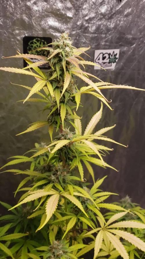 This gorgeous beast is so damn heavy I've had to support every single branch with plant yoyo's. There are no joke about 15 of them on this one plant. Even the little branches need support because the flowers are so big and dense! Not to mention this girl smells so strong of gas, sour funk, and a little citrus!