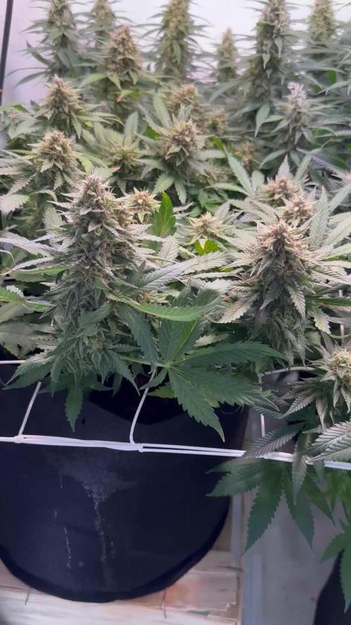 Day 101, 43 days of flower(start of week 7 of flower) - Picked more dead leaves off, Plant A- has the biggest bugs, all orange hairs, but the smallest stalk.