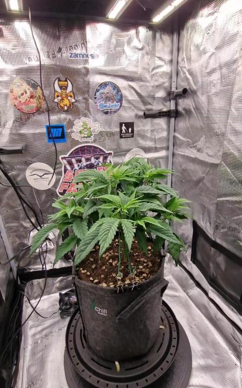 Showing some signs of preflower but probably another week for veg. Topped girl looks healthy at 34 cm tall while the small one is 15 cm. Next run I will def have 4 girls inside the tent as it feels like there is plenty of room.