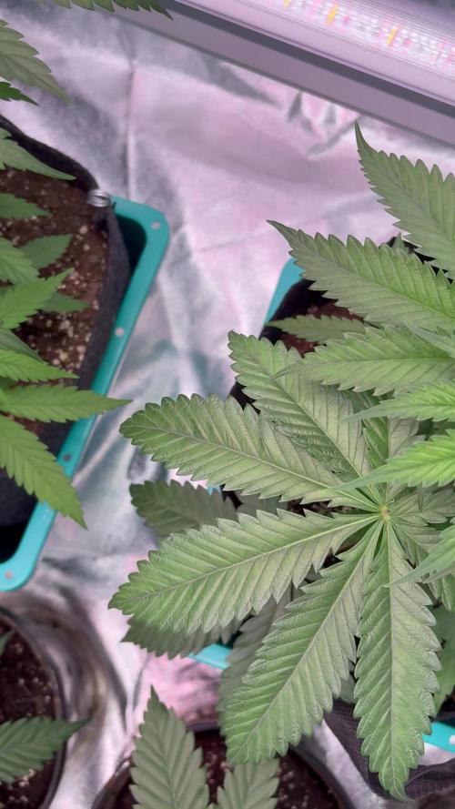F11, riego con EC 2.2 y pH 6.3, se cambió la luz de 1 LED de 480w a 3 LEDs de 240w, sumando un total de 720w, a una distancia de 40cm de las plantas y una intensidad de 80%, estamos en la semana 2 de floración, esperaré hasta la semana 3 para hacer una gran y última defoliación, Lollipop y acompañado de instalar una pequeña estructura de tutores.