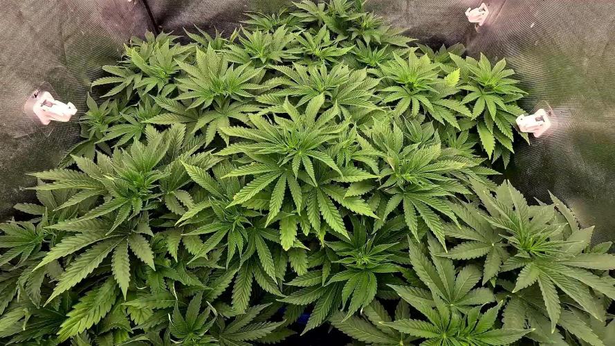 👉My time has been slightly curtailed due to work demands and I hadn’t been able to mule any water home until today. In the absence of the 98% pure water I get from a medical facility, Ive been using tap water run thru a 1cf carbon tank. The tank dechlorinates the water, I use it for my outdoor patio garden of herbs, peppers and single tomato plant. The pure water was 4micro siemens conductivity, the carbon tank water is 45micro siemens (tap is 245). The carbon tank water is far less reactive. This is evident when adjusting the pH. A batch made with the RO water needs just a few drops of pH down to reach desired pH. A batch made with the Carbon tank water takes a couple droppers full. Ive also noticed that the plant may not be able to absorb as much of the nutrients with the carbon tank water. This may be pure anecdotal stoner’s observation, but the EC of the run off has been almost impossible to get down to matching inflow. Its staying 20+ and shoots right up to 30+ each day. I started just giving double volume feed water and no low EC solution. Partly because I broke one of the jugs which I used for mixed solution batches. The high EC run-off may also be a result of the dried nutrients on the side of the pot being washed away more due to the higher volume of inflow. So I may be chasing my tail on this by giving full strength nutrients at double the volume with double run-off. Good thing is that you cant over water in coco unless you try really, really hard. 2 fertigations in one day isn’t even close. The plant is drinking more each day as measurement of the run-off compared to inflow shows the saturation volume. I fertigate in two steps when doing high volume, divide total volume in half and feed half and then measure the runoff. I then feed the second half and again measure the run-off. The difference between the inflow and run-off is the amount taken in by plant and lost to evaporation. I split the total in half to get a more accurate measurement of saturation level and plant intake/evaporation level. I then use that information to help predict how much solution should be given at the next fertigation event. This coming week I will be switching to the late bloom solution mix recipe for the GHE drain to waste chart. I mix it to the upper level strength for desired EC. The difference is slight. It removes rapid start from the mix, and reduces others slightly, except for bloom and micro. I should be able to return to the RO water for the rest of the grow.