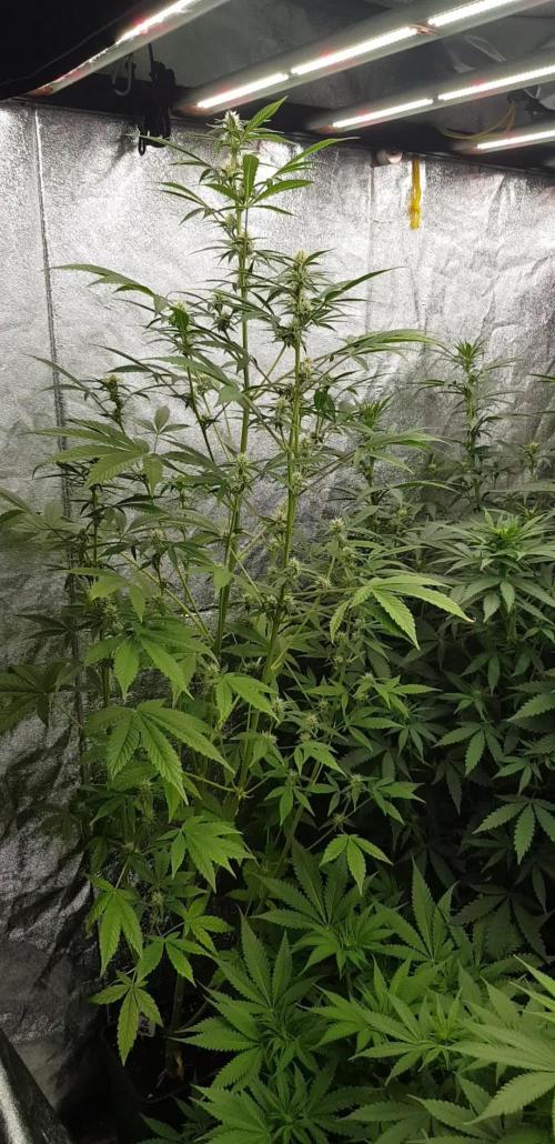 Day 79, 28th of November 2020: Hi there! Here we go let's say half way. Plants are pretty these Original Sensible Seeds genetics are fantastic! The 2 OG and the Runtz Gum is very strechy. Black Ghost is pretty shorter bushier plant. Runtz Gum and Do-Si-Dos OG approx the same height Do-Si-Dos OG is taller a bit. Wedding Gelato is really cool little, bushy anf nice buds forming not problem with her all she is quiet. Do-Si-Dos OG has some deficiency and leaf gets dry but nothing very serious..... Fertilization is still the same every second day with the rationand mixture above stated. The lamp is on 11.15 min and off 12.45 min. Last week was 15 min longer light cycle.... So every week 15 min shorter light cycle until the 5th week. So far -45 min. It switches on at 6 am and off at 17.15 pm.