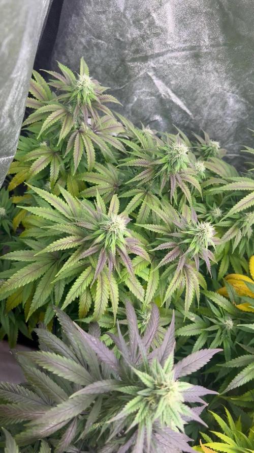 8e Semaine de floraison impeccable grossi bien chargé en résine irrigation a l'eau uniquement durant les 2 dernières semaines. J'ai vérifié les colas es celle-ci c'est fait polinisé par le male Sour tangie dawg mais rien de grave quelques graines, cela me permettra d'avoir une nouvelle génétique issue de ces deux plantes donc a voir ne pas ce précipiter. Elle dégage une plus douce odeur durant ces derniers jours.