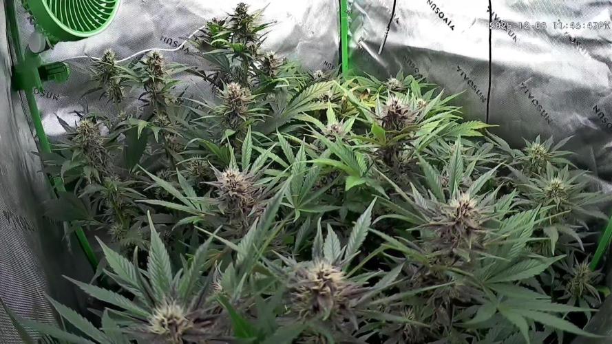 Day 79, 28th of November 2020: Hi there! Here we go let's say half way. Plants are pretty these Original Sensible Seeds genetics are fantastic! The 2 OG and the Runtz Gum is very strechy. Black Ghost is pretty shorter bushier plant. Runtz Gum and Do-Si-Dos OG approx the same height Do-Si-Dos OG is taller a bit. Wedding Gelato is really cool little, bushy anf nice buds forming not problem with her all she is quiet. Do-Si-Dos OG has some deficiency and leaf gets dry but nothing very serious..... Fertilization is still the same every second day with the rationand mixture above stated. The lamp is on 11.15 min and off 12.45 min. Last week was 15 min longer light cycle.... So every week 15 min shorter light cycle until the 5th week. So far -45 min. It switches on at 6 am and off at 17.15 pm.
