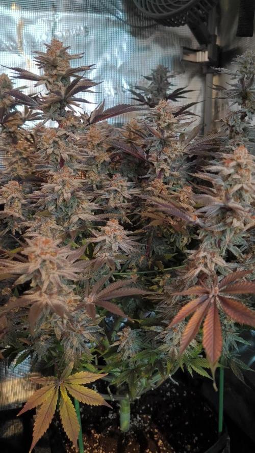Sour Stomper Auto Feminized Seeds are an example of what careful selection can achieve with breeding. A fruity style pheno of the Sour Crack female crossed with the Grapestomper OG male from Gage Green then crossed with ruderalis by Mephisto. This 50/50 Indica Sativa hybrid has a great stretch contributing to large yields. Due to cooler conditions late in flower, this dense canopy can produce beautiful blues and purples. A great genetic for indoor and outdoor cultivation and all finished and ready to harvest in just 65 to 70 days. This hybrid is popular with extracts and has Grape aroma in bloom.