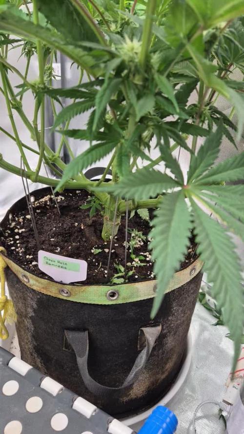 Flip the script to 12/12 waiting on a small tent via amazon to put my MILF in so I do not contaminate the other ladies, clones are hanging in there hope they will be ready to go into flower at 21 days. I just potted up to a 5 gallon fabric pot. They were drinking so much they were dry in 1 1/2 days. gave them a mild feeding and a good watering did not want to give to much trans nuites this week as I just lolly popped and potted up on the same day they look healthy enough to take it but I did not want to over whelm them with the food. so the plan moving forward it to start spraying MILF A in her own tent while the others flower in the big tent then the clones will move in to the tent and flower for 3 weeks all the while spraying MILF A 2 times a day with the CS the hope is by off setting the clones and the mothers by a week the MILF at 4 weeks while have Feminized Polled sacs that will be ready to sprinkle on the clones the other to mothers will flower to completion be chopped and dried and the clones will go until the seeds are mature with in an extra week or two. Stay Safe🙏 I will post more pics this week end.