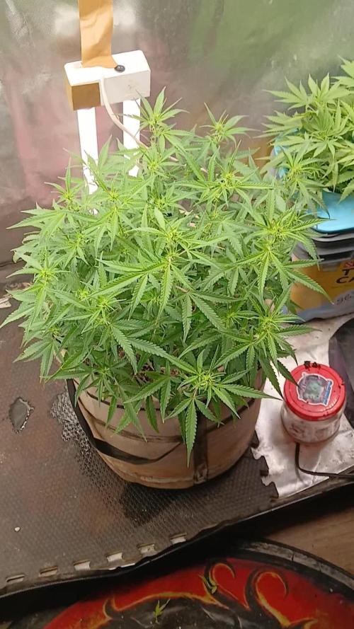 • Flowering: Buds are filling out, and the aroma is intensifying. The plant looks vibrant and healthy, with a great balance of bud sites.