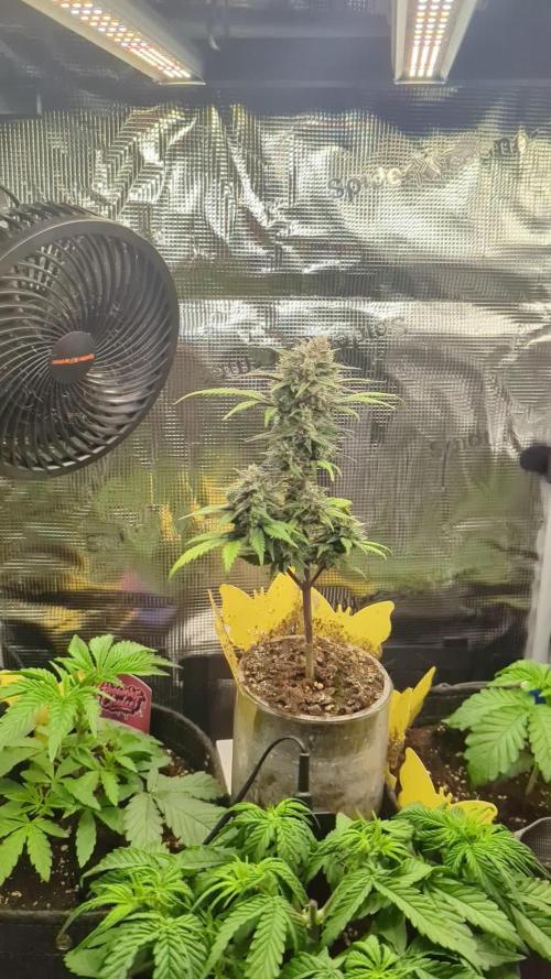 Next up I'll talk about my Cream & Cheese CBD+ from Seedsman. She's in the lead with just overall looking awesome!!! The buds are long and super healthy looking with tons of leaves along the branches and I've defoliated a few times. The remaining leaves don't seem to be blocking much because most branches are bent over due to the weight of the buds! She is supposed to be in the 20's with BOTH THC and CBD. I'm looking forward to smoking this one also! ๐ช