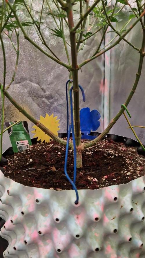 I have got a whole crew of four Bubble OG plants, and they're all doing really well. These plants are like quadruplets – they all look super similar, with the same strong smell that's kinda like a putrid skunk. They're all uniform in height and have the same spacing between their branches. It's like they're all following the same blueprint. Happy late turkey day grow diaries world!!!! It's now day 24 from seed for all the seedlings I have going. The past few days the plants have really started to take off. There roots have really started to dig in. Every other water I am still giving 2ml per gal of fox farm grow big. I keep having to tell myself not to add any more nutes other than that. I don't want to fry my plants but I also want they to start jumping. I'm quite excited for the coming week, I think the next 7 days or so is when the plant really starts to transform and look more like a pot plant than just some random little green thing. A few days ago I decided to move the plants from under my 55w cheep amazon light to under my spider farmer 100w newer version light with the good leds in it. The plants will hopefully be ready to up pot them here soon and get them in the large tent. Sometimes when growing multiple different strains it can be really hard to balance giving to much or to little light. You don't want the faster growing plants to get to stretched out waiting on the slower plants to catch up I spend Thanksgiving day morning transplanting the plants into 2gal pots. I am useing spme promix potting soil it's my 1st time tring this soil. It is actually doing really well the roots were all white and nice looking. I think next time I'm going to add some worm casting, kelp, granular mycos, and a little bit extra perlite. I just didn't have the money with christmas coming to splurge for all the extra stuff. I got rid of 2 plants 1 of the bubble og and 1 skunk apple runtz. There is only room for 10 pots in the 2x4 tent. I will peob only bring 8 of them to flower, always good to have back ups. Yesterday I also stuck the plants back under the 500w medicgrow mini sun 2 in my 2x4 tent. They did great under it the 2nd half the day I was happy they didn't get stressed. I had put them under that light a little early about 10 days ago or so. I am expecting in a week these plants will ge going crazy with growth
