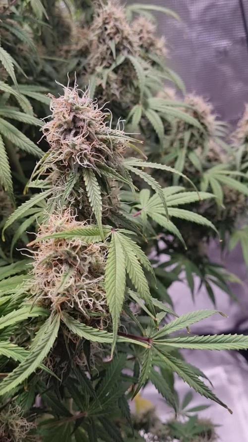 Almost a week late making this update. Thankfully, during my negligence to this, the plant still recieved the care it needed. Knowing this genetic with the heat I have, it'll surely foxtail with some bleaching. I truly need a new camera setup with a better angle. For now, ill need to remember to take pictures myself. Been busy setting up a new area to go bigger. Temps were a battle, but something I'll wait to address in the future set up. Night time humidity levels are also a challenge. Did a bit of a defol, that'll be it, unless I decide to do a heavy strip prior to harvest.